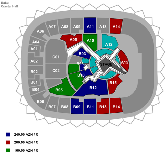 The Venue: It seems almost unbelievable, but scarcely ten months after ground was broken on the plot of land jutting out into the Caspian Sea near National Flag Square, we have our venue.  The architects and developers of the brand-spanking-new, 23,000-spectator-capacity Baku Crystal Arena handed over the house keys to the team from Brainpool (the German production company also at the helm during last year’s contest in Düsseldorf), who will outfit the arena with its stage.  Eurovision.tv has put up a gallery of the new edifice, and a general idea of the venue’s layout was put up by Ticketmaster: